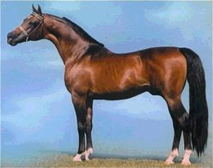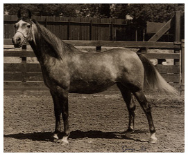 In 1931 two very important stallions were obtained for the Gumniska Stud of Prince Roman Sangusko by his agent who went to the desert to locate new stallions. The first was the grey Kuhailan Afas, whose son Bad Afas (out of the French mare Bad) sired *Naganka (dam of multi-National halter champion Bay El Bey++ and U.S. National Champion Park Mikado++) and Abu Afas, sire of the great race mare *Sabellina and the motion sire Comet. The other stallion was the unforgettable Kuhailan Haifi, the founder of one of the world's most successful sire lines through his son Ofir, born in 1933. Ofir stood just two seasons in Poland but his sons Wielki Szlem and Witraz were to have profound impact on breeding in Poland, while his son *Witez II, imported to America in 1945, was highly influential here (he is the paternal grandsire of U.S. National Champion Stallion Zarabo and U.S. National Champion Mare Indian Genii. Ofir's daughter Mammona went to Russia as a foal in 1939 and became a mainstay of the breeding program at the Tersk Stud there (she is the granddam of U.S. National Champion Stallions *Muscat and *Marsianin). Ofir himself was a prize of war for the Russians in 1939 and ended his stud career at Tersk.
